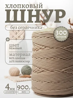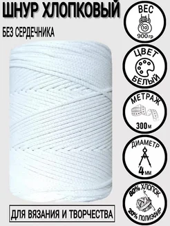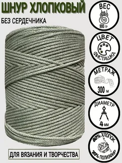 Шнур для вязания хлопковый 4мм 300 м