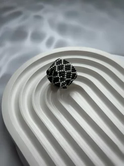 Кольцо из бисера широкое черное