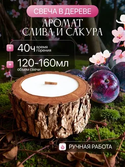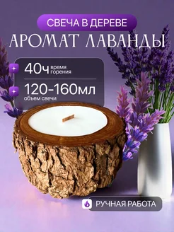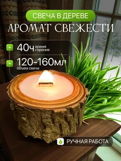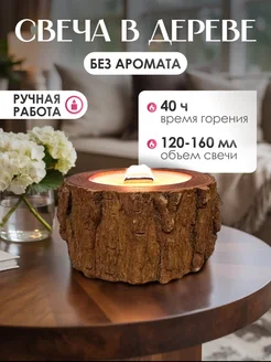 Свеча ароматическая в срубе дерева с ароматом ванили