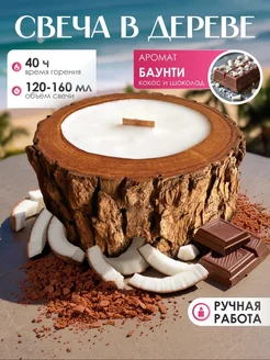 Свеча в дереве с ароматом Баунти (кокос и шоколад)