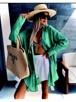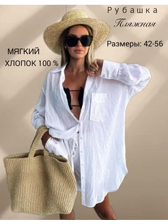 Рубашка туника белая пляжная летняя льняная хлопковая