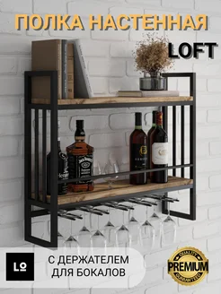 Полка подвесная в стиле лофт с креплением для бокалов