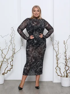 Платье-сетка новогодняя русские мотивы полупрозрачная