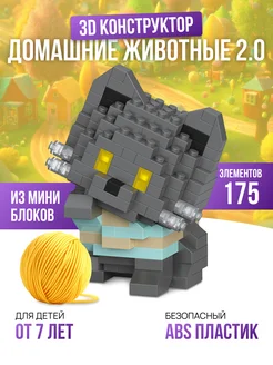 Конструктор 3Д из миниблоков кошка для девочек и мальчиков