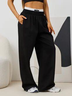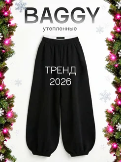 Широкие спортивные штаны на резинке утепленные оверсайз
