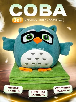 Мягкая игрушка Сова с пледом подушка 3 в 1