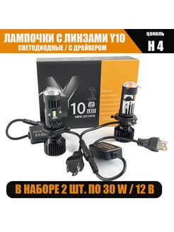 Лед лампы H4 автомобильные с линзами H4 Y10 белые 6000k
