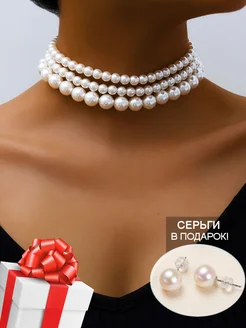 Свадебная бижутерия на шею Колье Ожерелье из жемчуга тройное