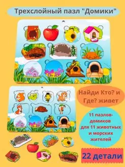 Пазл трехслойный рамка-вкладыш "ДОМИКИ"