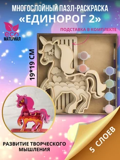 Многослойный пазл-раскраска набор для творчества "ЕДИНОРОГ"