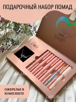 Набор жидких матовых помад и блеска для губ + ожерелье