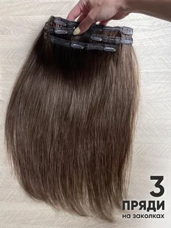 Натуральные волосы на заколках 3 пряди 40 см 60г - русый #9