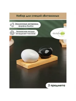 Набор керамический для специй на деревянной подставке