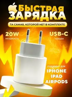 Адаптер Apple USB-C 20Вт Быстрая зарядка для iPhone