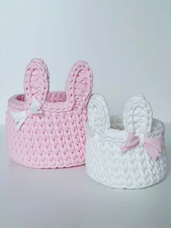 Вязаные корзины Зайчики для хранения - набор 2 шт