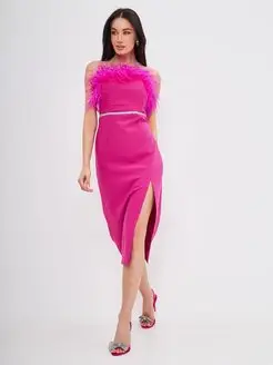 Вечернее платье с перьями и разрезом