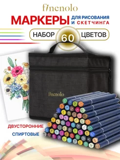 Маркеры для скетчинга двусторонние, 60 цветов, в сумке