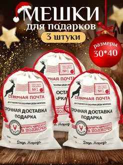 Подарочные мешки новогодние, набор 3 штуки 30х40