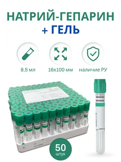 Пробирки для плазмолифтинга с натрий-гепариноми гелем 50 шт