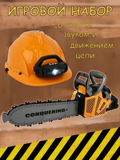 Набор инструментов игрушечный с каской и бензопилой