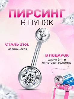 Сережка пирсинг в пупок штанга с фианитами банан для пупка