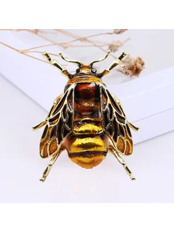 Брошь Пчела янтарно-золотая 3,5см