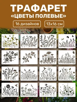Трафарет Цветы полевые 13х16 см - ассорти 16 шт