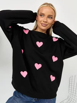 Свитшот оверсайз 3d сердцем без начеса