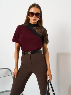 Блузка с кружевным рукавом нарядная