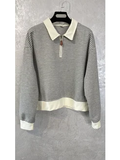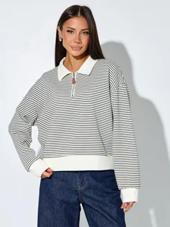 Свитшот полузамок поло с длинным рукавом в полоску