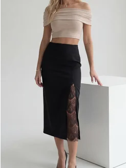 Юбка с кружевом миди женская