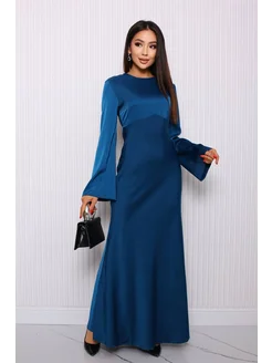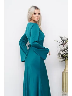 Атласное платье макси с длинными рукавами