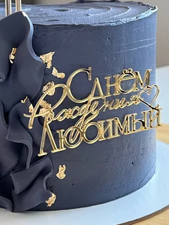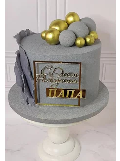 Топпер для торта зеркальный Мужу и папе С днём Рождения