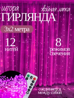 Гирлянда хвойная лапка штора 3х2 новогодняя розовая