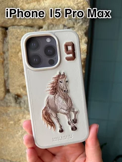 Чехол кожаный для iPhone 15 ProMax с вышивкой