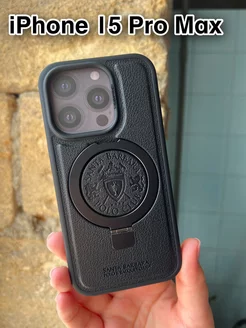 Чехол кожаный для iPhone 15 ProMax с MagSafe подставка