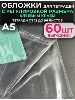 Обложка для тетради, 60 шт, с клеевым краем, плотные
