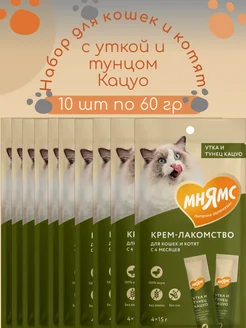 Крем для кошек с уткой и тунцом Кацуо 10шт*60г