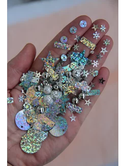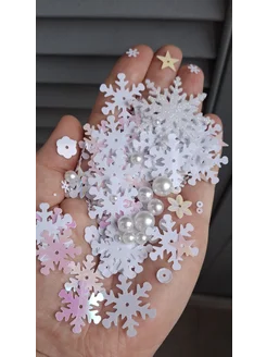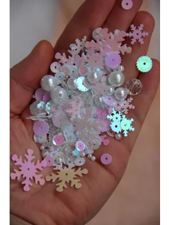 Пайетки для творчества набор новогодний снежинки микс
