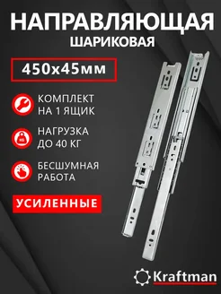 Направляющая шариковая полного выдвижения 450 мм, комплект