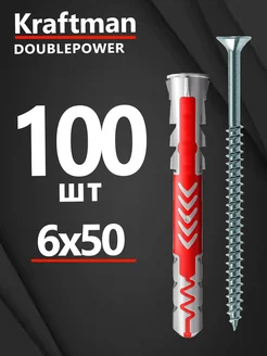 Дюбель универсальный 6х50 DOUBLEPOWER с саморезом, 100 штук