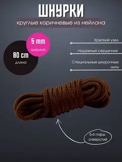 Шнурки обувные круглые из нейлона 80 см 5 мм