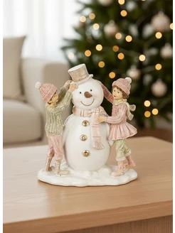 Фигурка декоративная "Снеговик и дети", L14 W8 H16 см