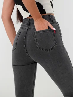 Джинсы женские серые зауженные с высокой посадкой скинни