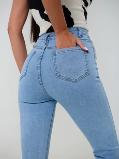 Джинсы женские голубые зауженные с высокой посадкой скинни