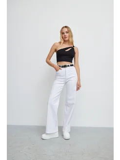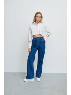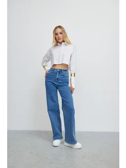 Джинсы широкие прямые с карманами
