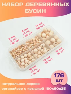 Бусины деревянные для рукоделия макраме крупные набор 176 шт