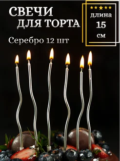 Свечи для торта серебряные набор длинная витая спираль 12 шт
