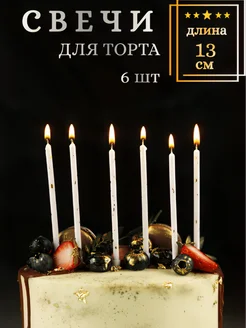 Свечи для торта длинные, высокие, прямые белые 6 шт набор