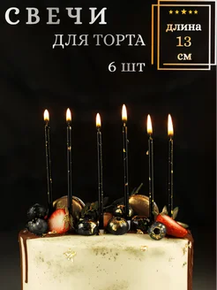 Свечи для торта набор длинные высокие прямые 6 шт черные